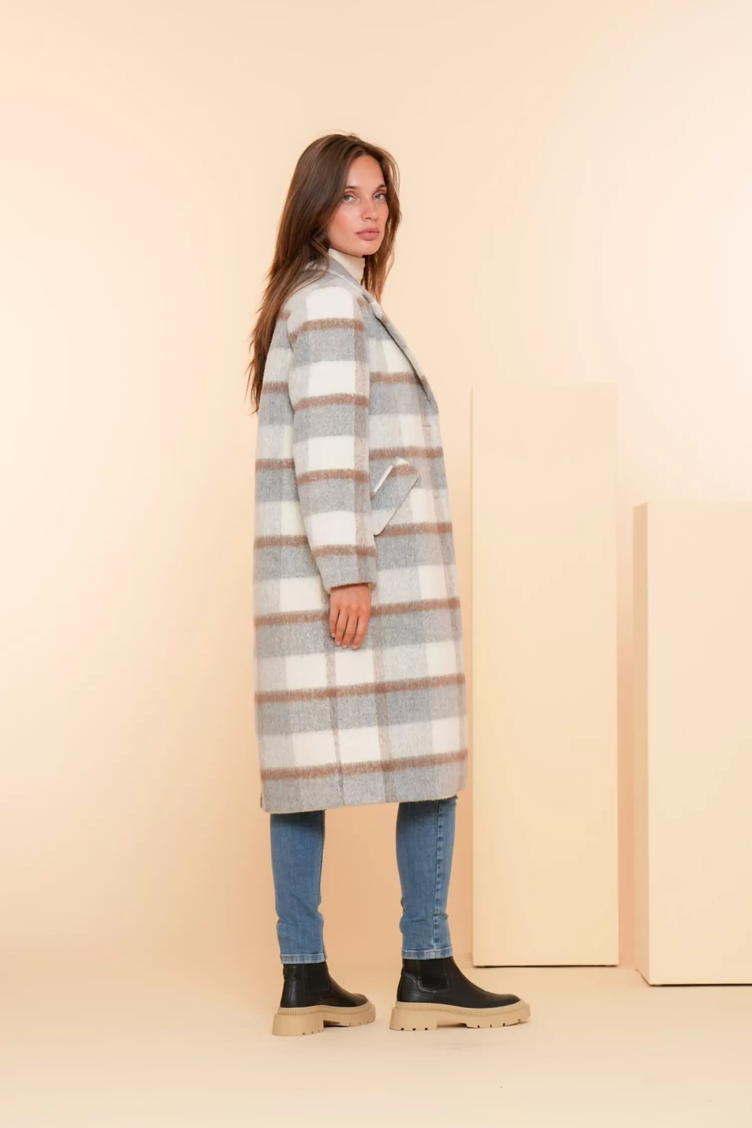 Deze wollen geruite jas is een onderdeel van onze W24-1 collectie.• Fit: rechte valling
