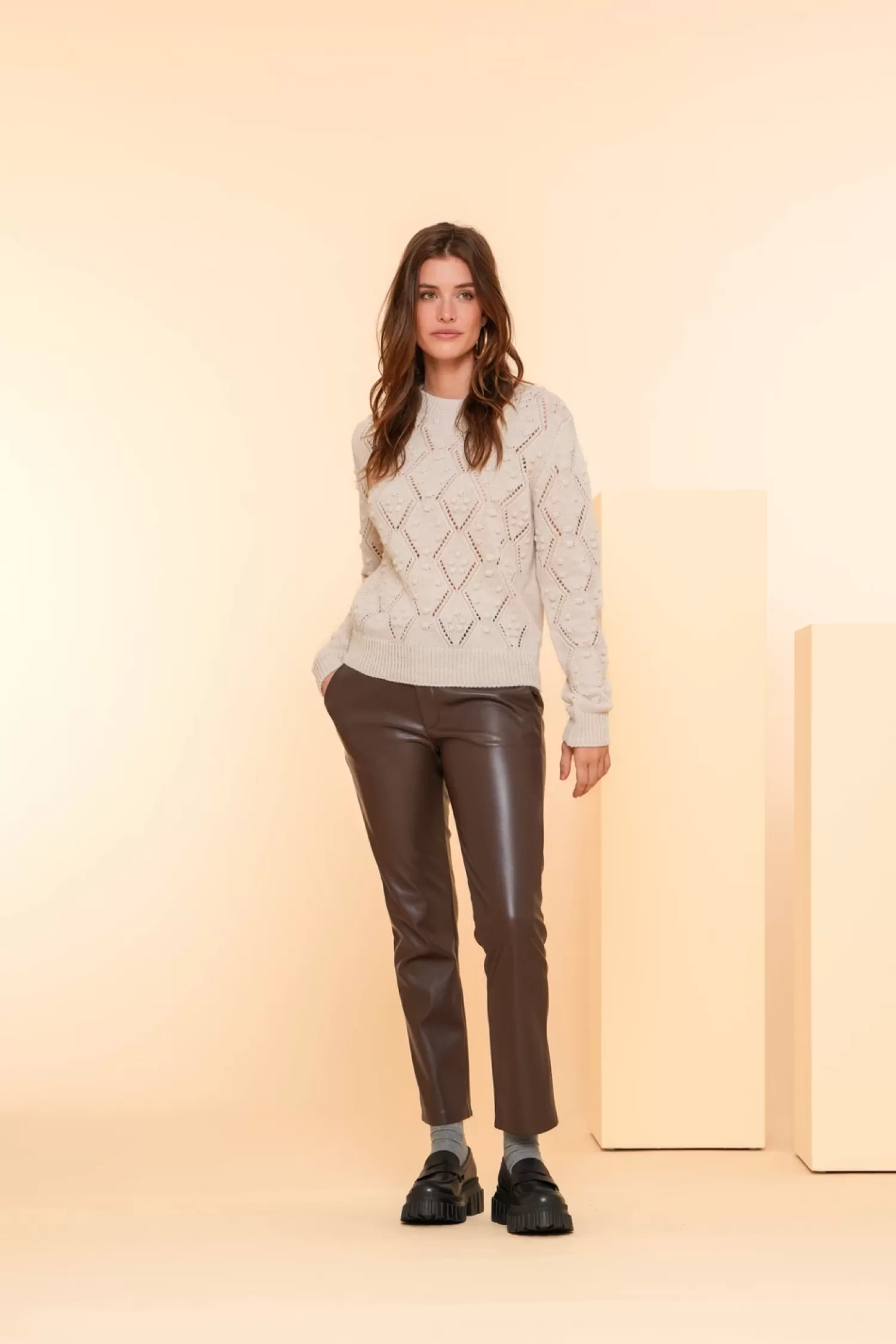 • Details: gebreide ajour trui met speelse dots